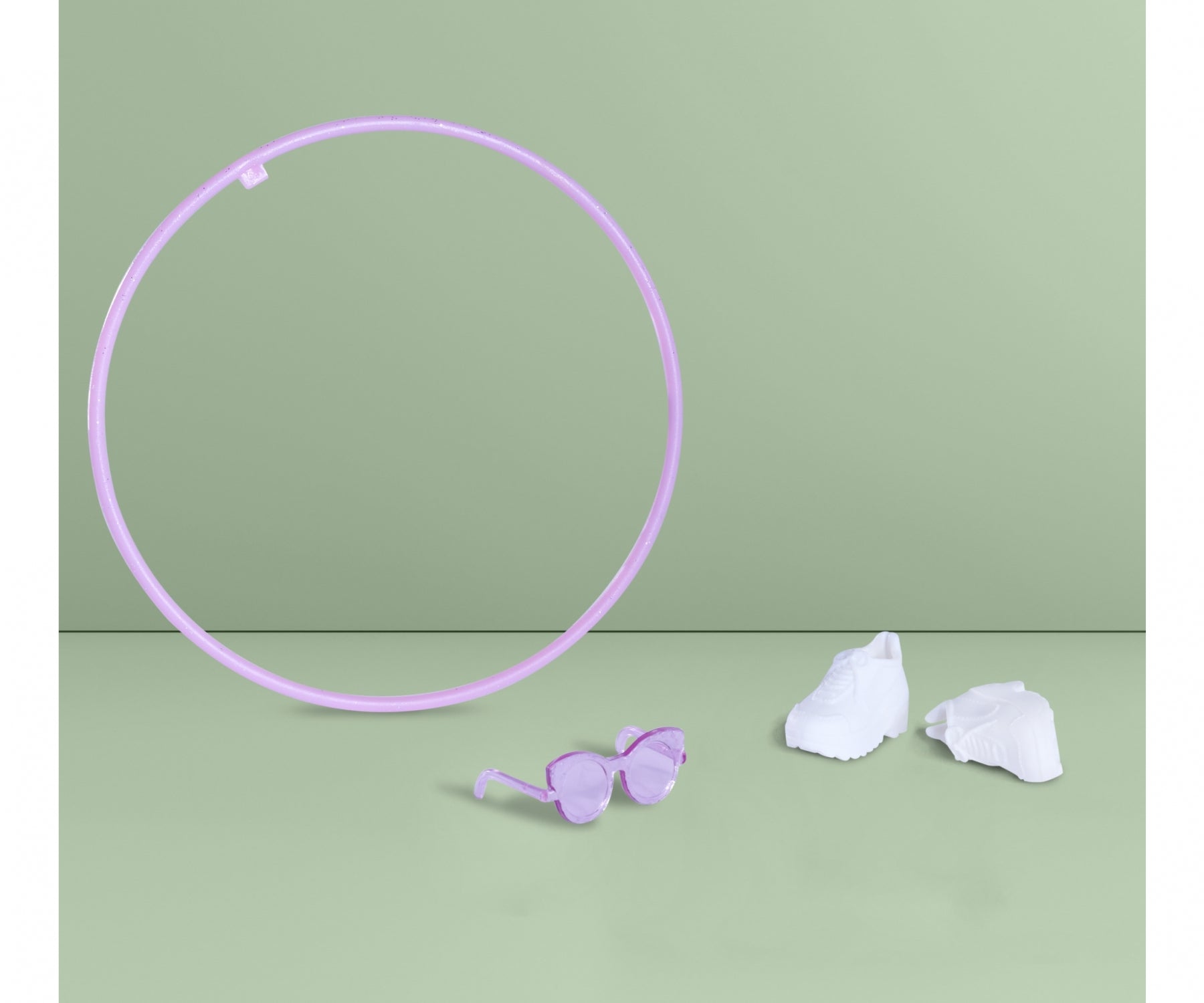 زي رياضي - ستيفي بطول 29 سم وترتدي زي رياضي يتكون من ليقنز/ فيزون زهري وبلوزة قصيرة مع زخارف فراشات. وكعكة شعر كاجوال ونظارة لتكمل زيها.