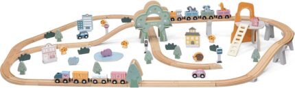 - Includes: 1 x Busy Me My Shopping Trolley, tomato, pear, brussels sprout, grape, corn, banana, juice cartons, milk carton, soup can, tomato sauce, water, olive oil, pasta, cake mix, lasagne, tuna can, porridge oats, and fruit can