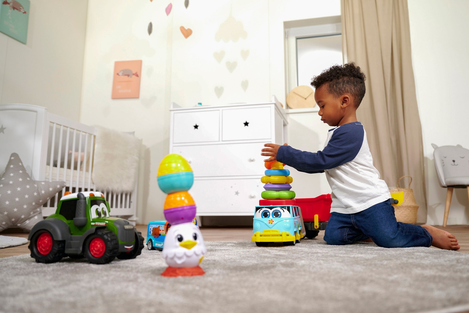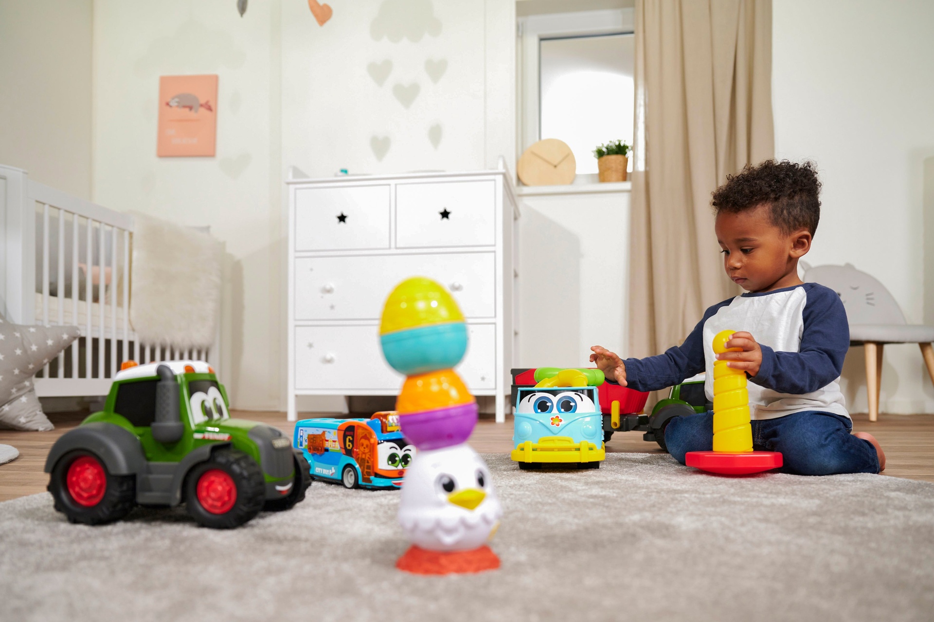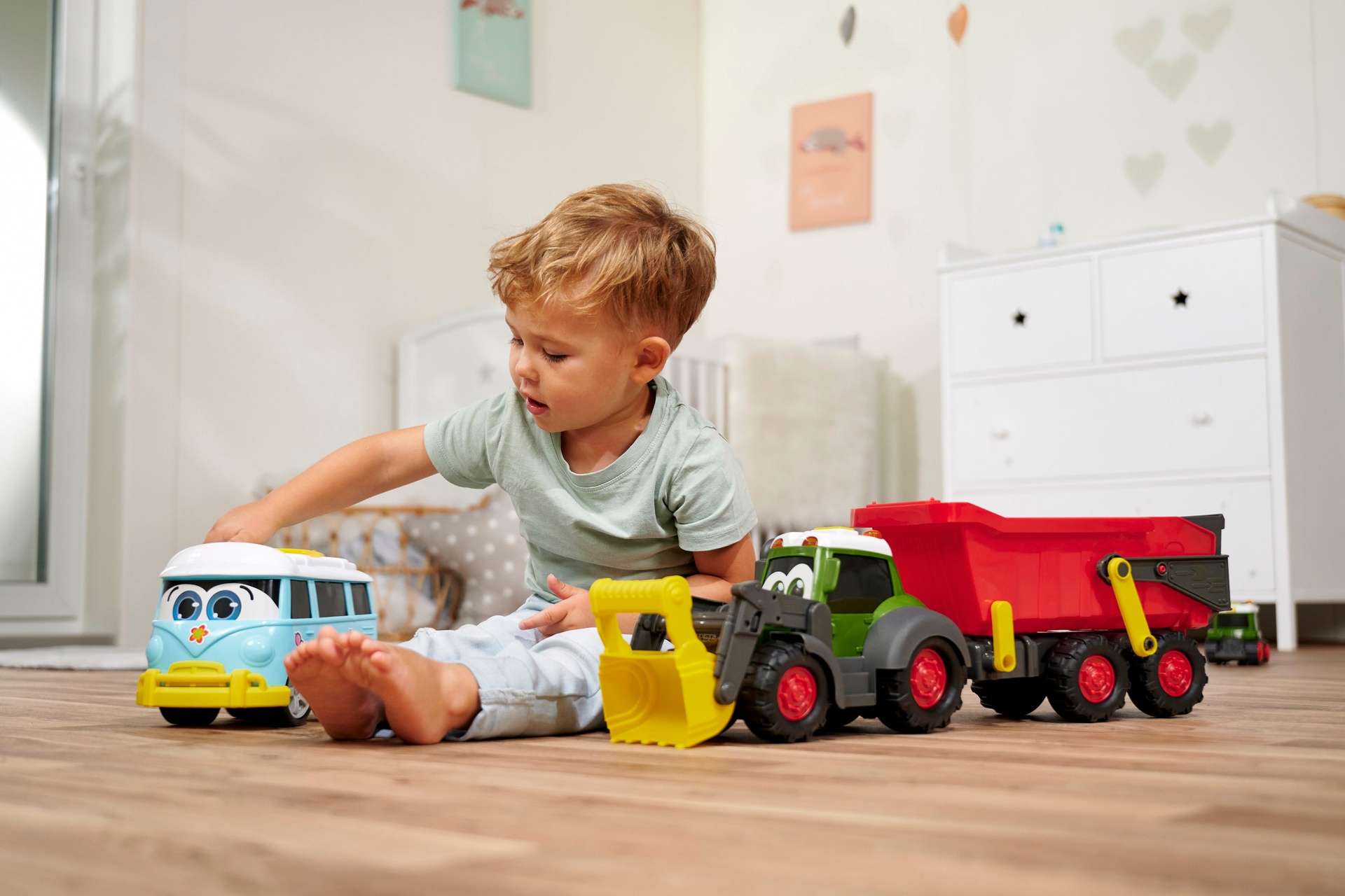 City bus from ABC Dickie, freewheel, turnable rattle roll with destination, opening door, moveable element on side, 22 cm