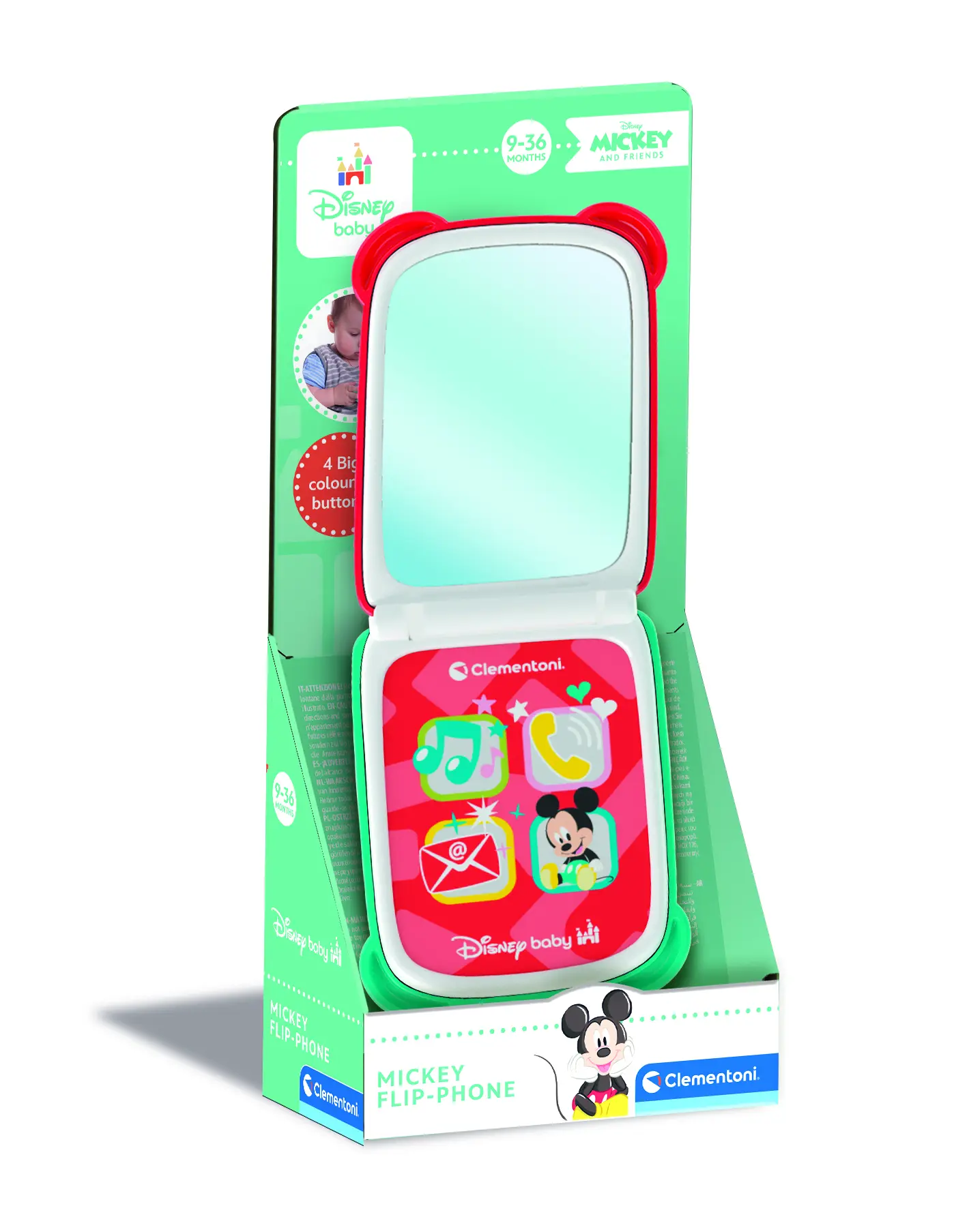 • Interactive flip phone with Mickey Mouse design.