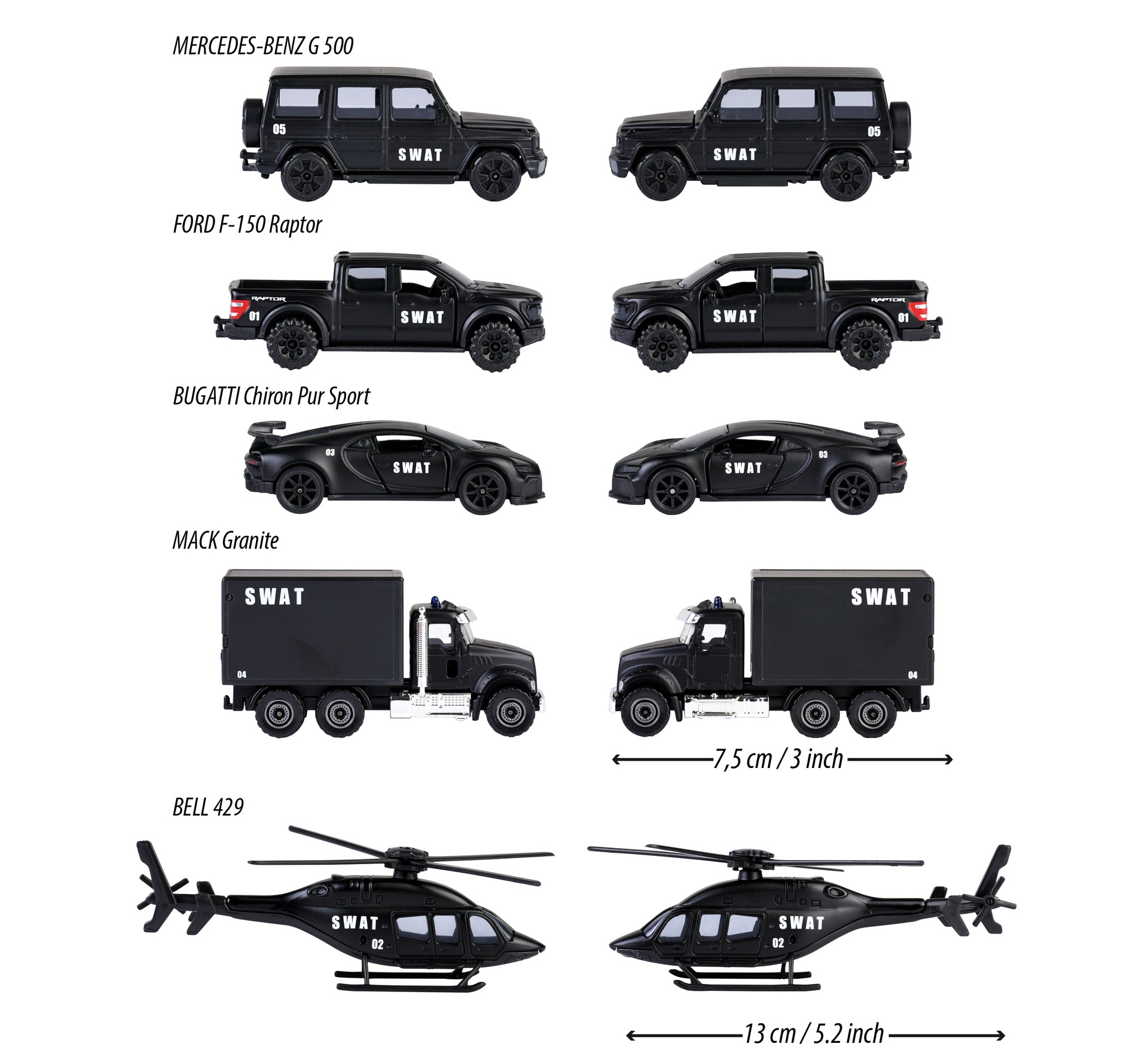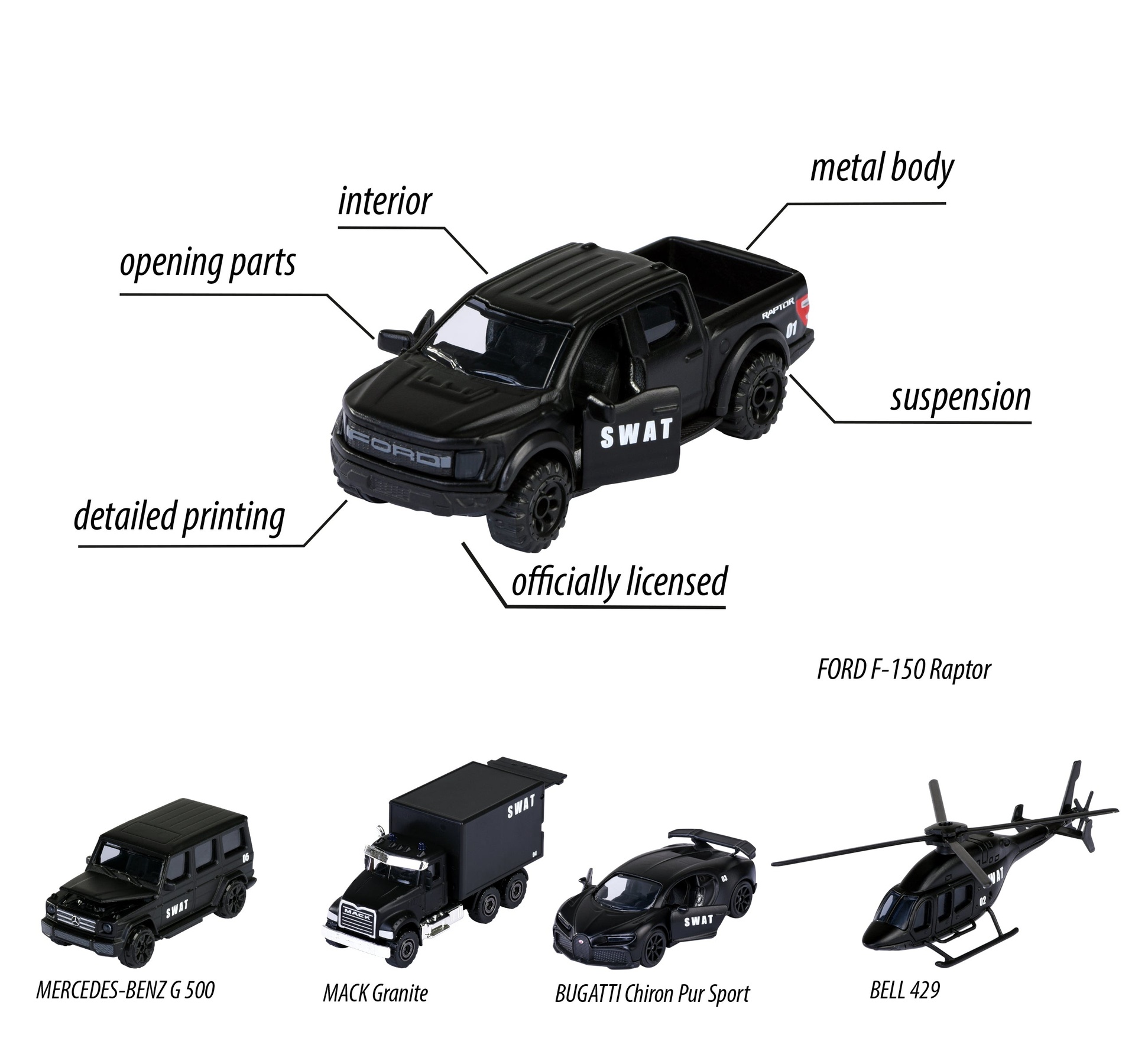 Majorette – SWAT Die-Cast Vehicle Playset – Black – 5pcs
