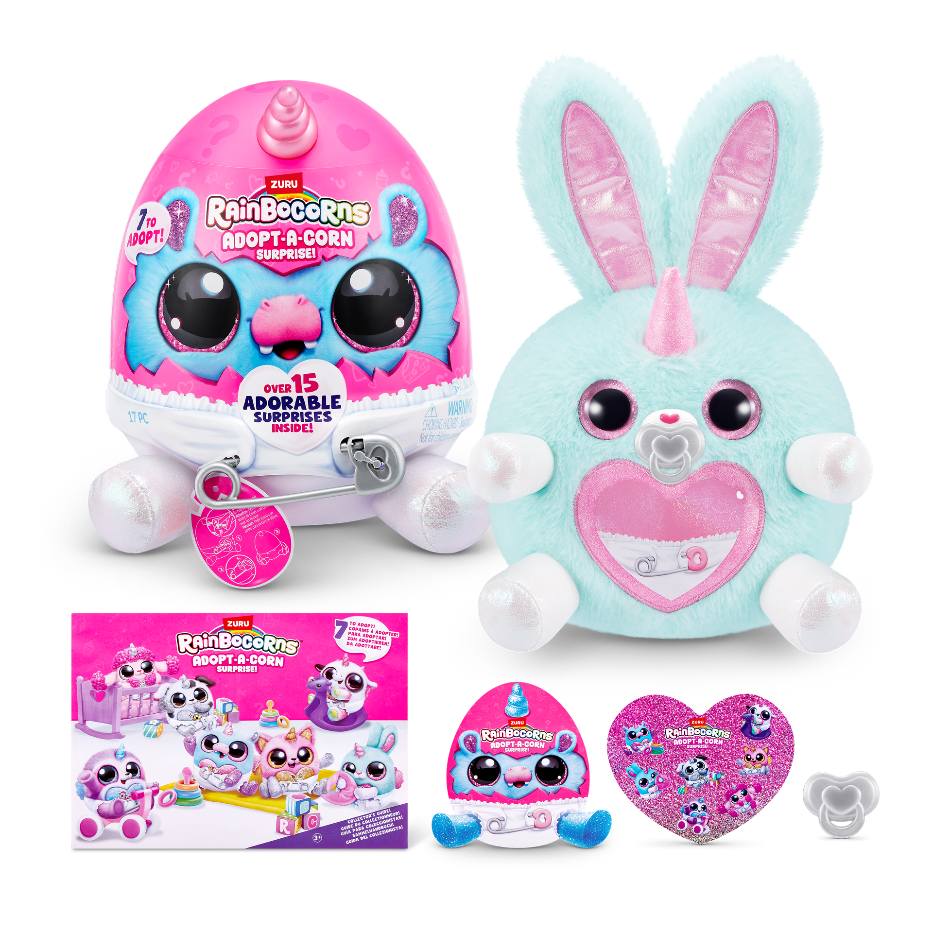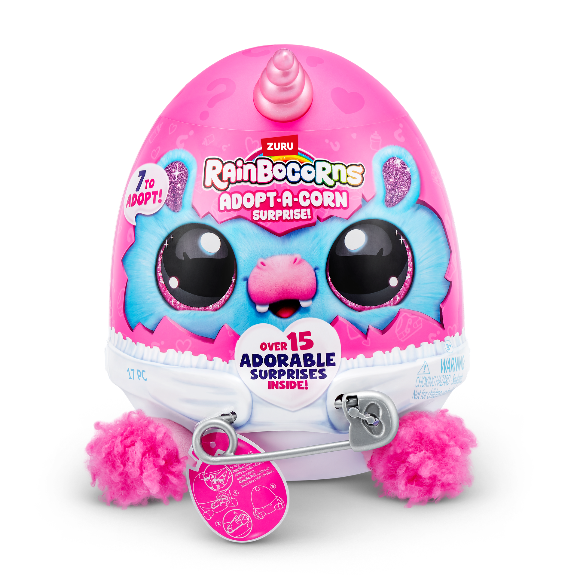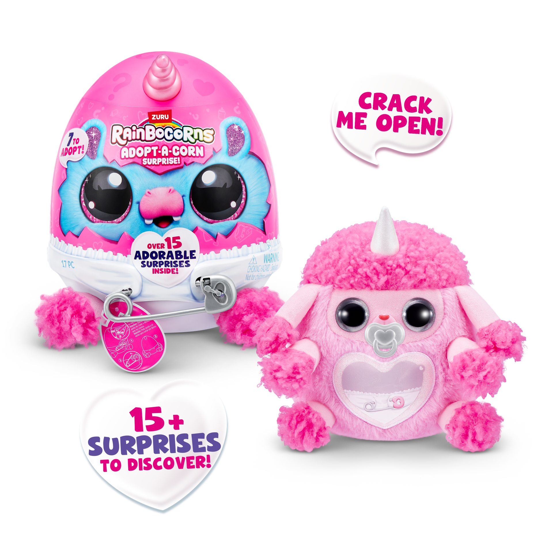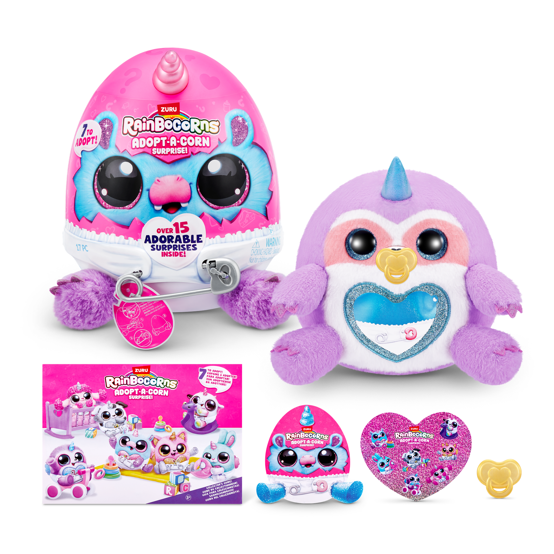 Adopt a brand new bestie with all-new Adopt-A-Corns! The cutest little baby Rainbocorns are crawling around Rainboville and are in need for your love and care! Unclip your Adopt-A-Corn out of its diaper for adventurous fun and clip back once it’s time for some rest. Don’t forget about the pacifier! There are 7 Adopt-A-Corns to adopt. Each egg comes with over 15 adorable surprises inside!