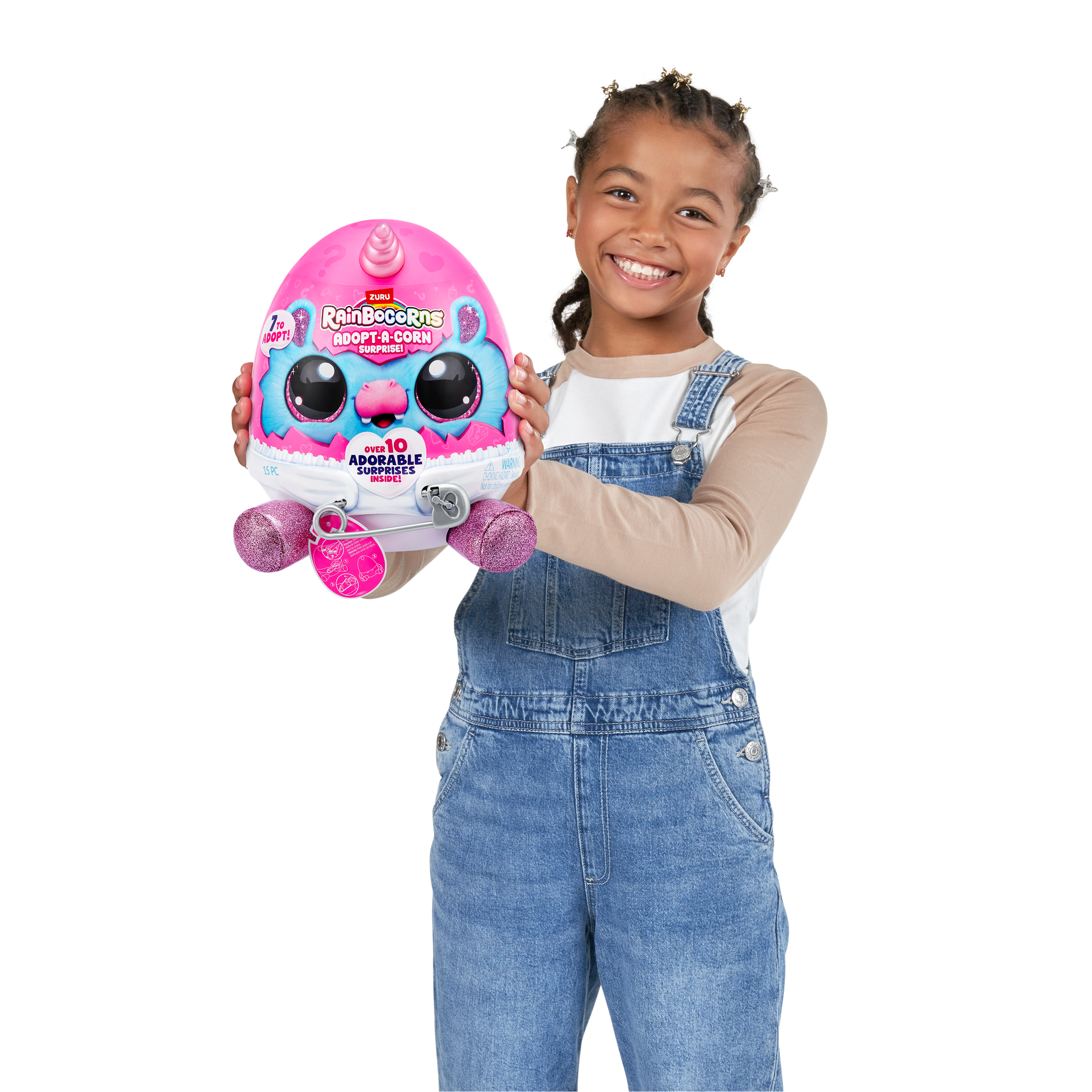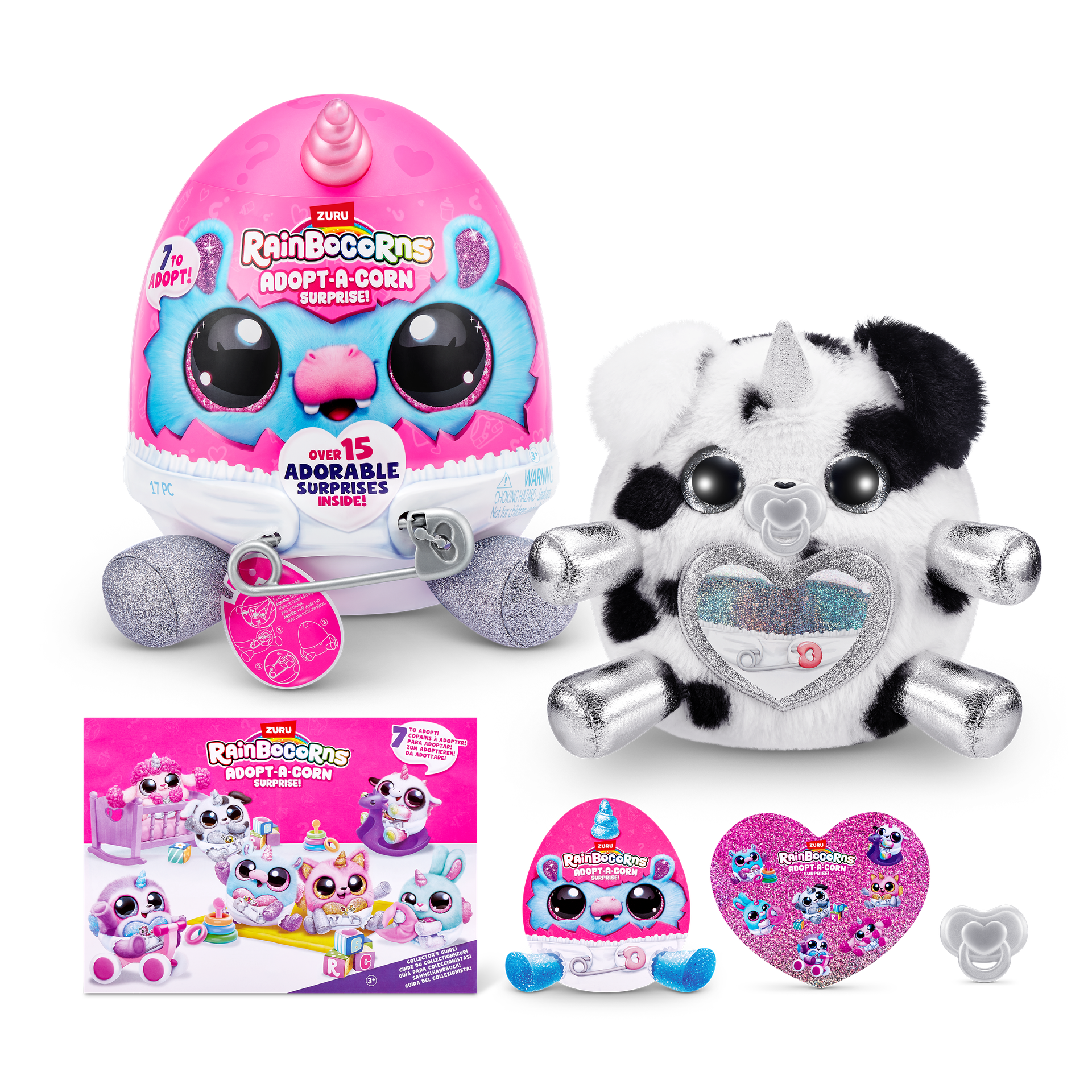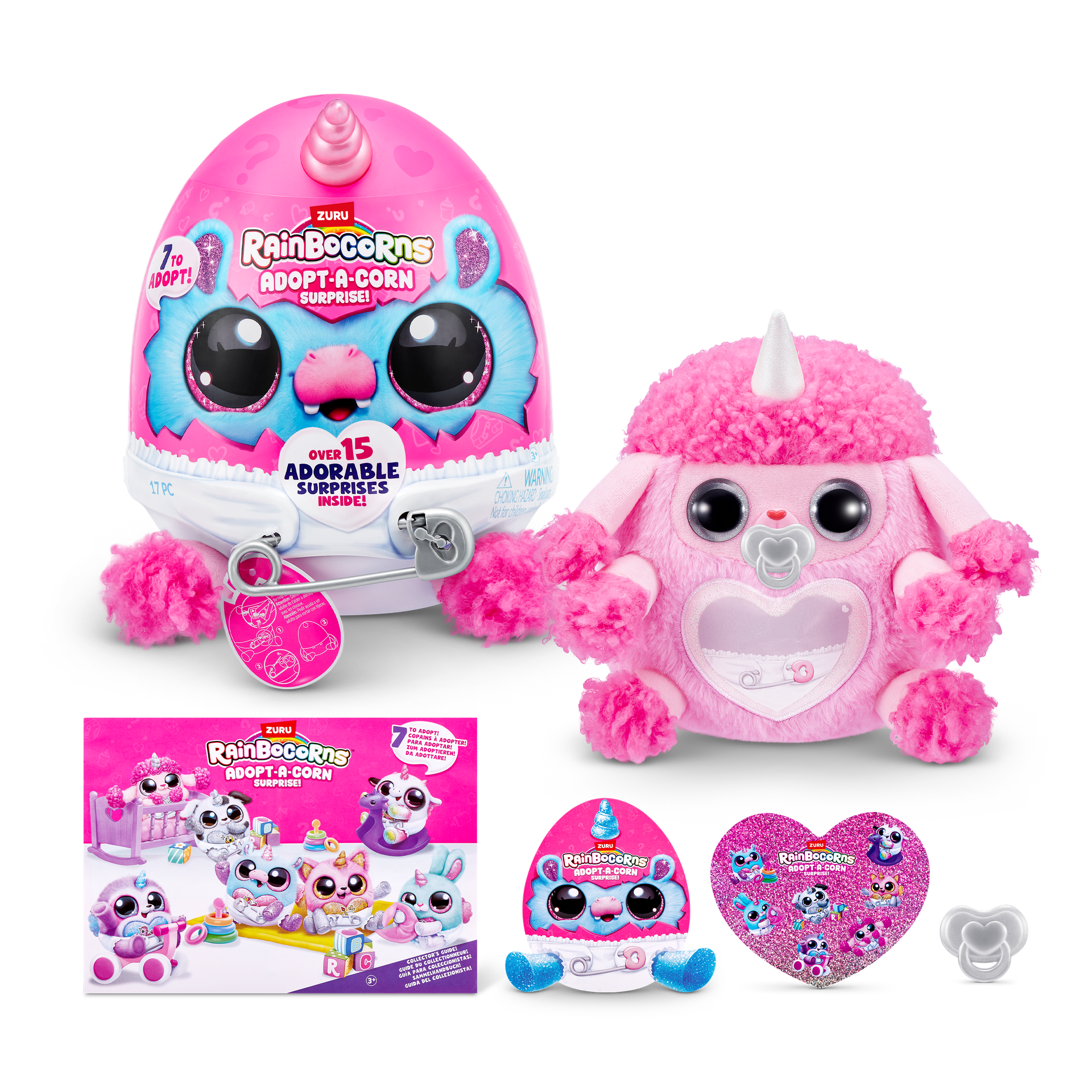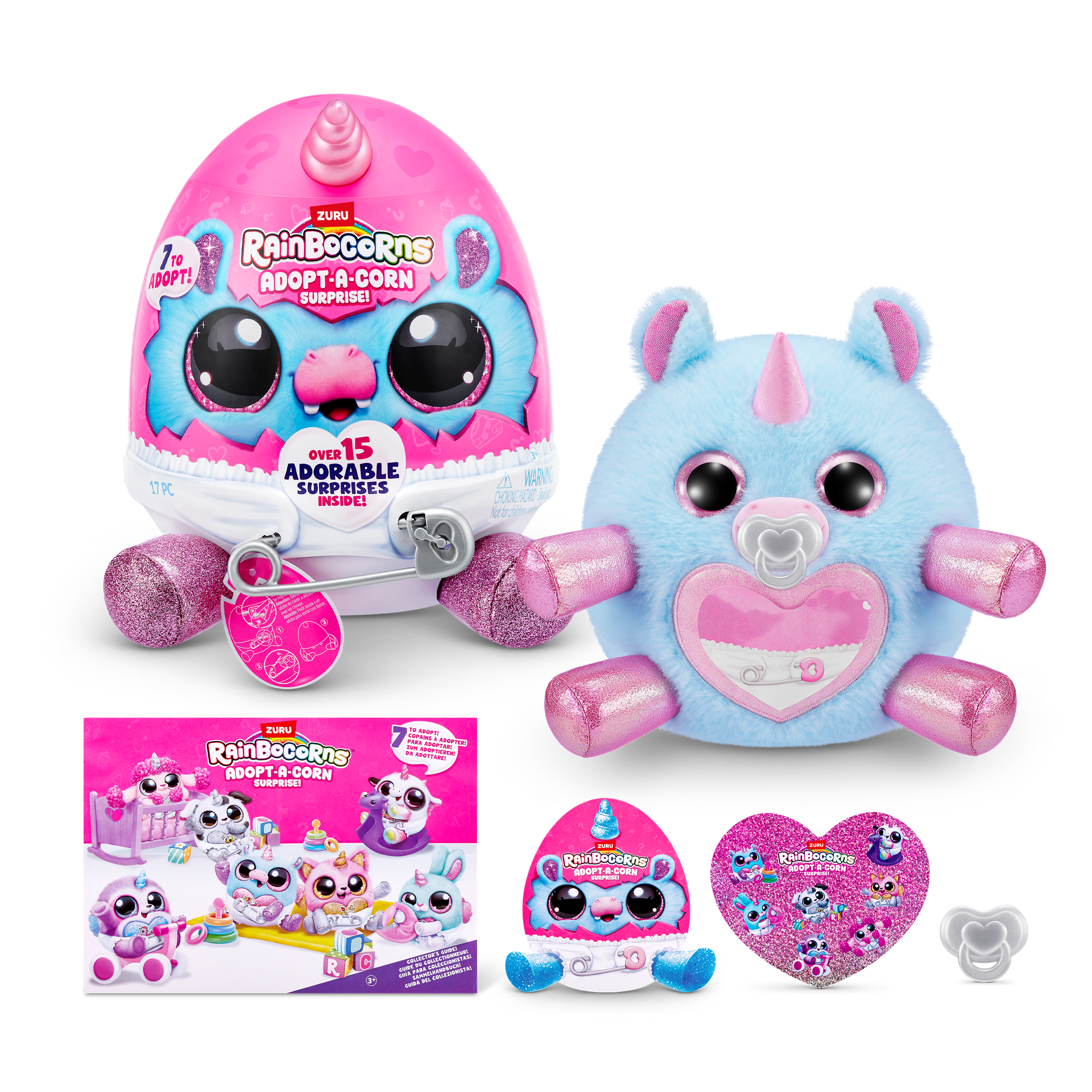 Adopt a brand new bestie with all-new Adopt-A-Corns! The cutest little baby Rainbocorns are crawling around Rainboville and are in need for your love and care! Unclip your Adopt-A-Corn out of its diaper for adventurous fun and clip back once it’s time for some rest. Don’t forget about the pacifier! There are 7 Adopt-A-Corns to adopt. Each egg comes with over 15 adorable surprises inside!