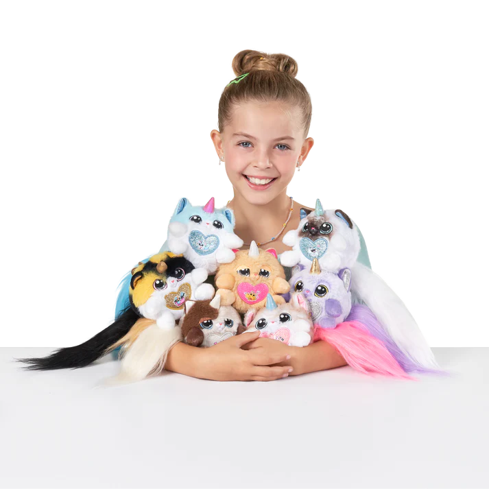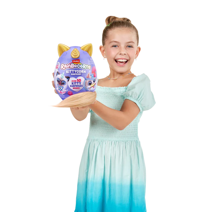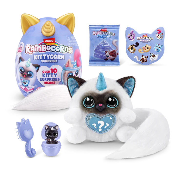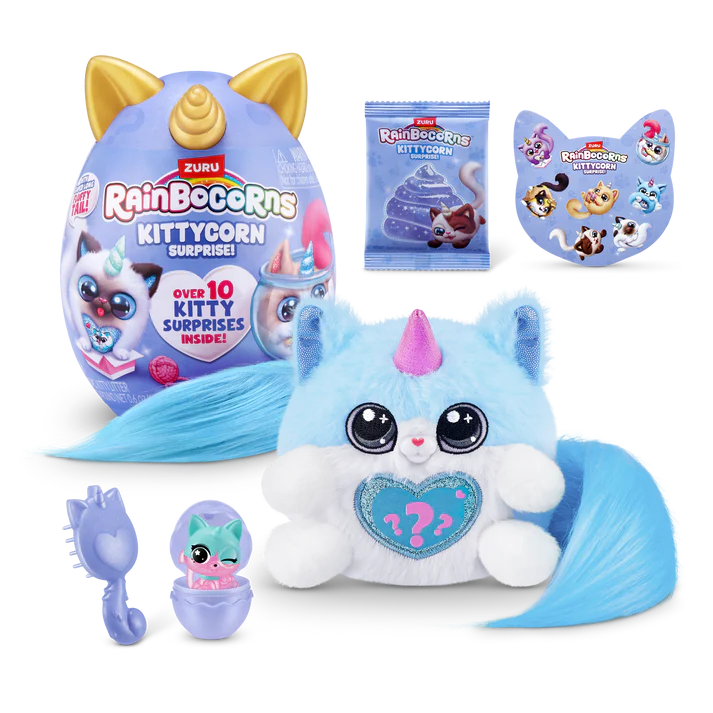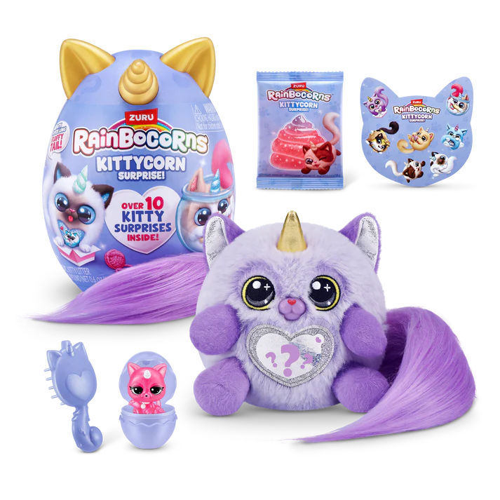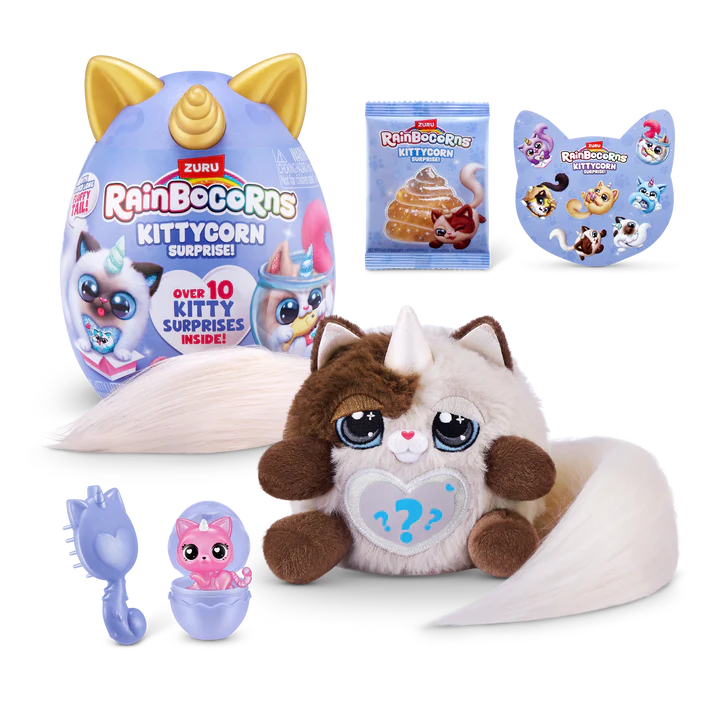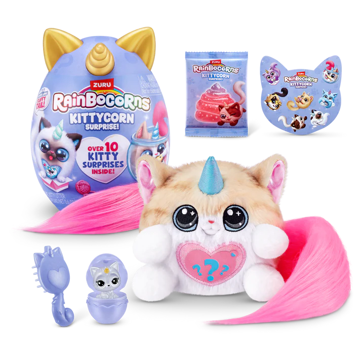 The most purrrfect kitties have hatched into Rainboville and are ready to play in Kittycornia. With all new super soft, super long fluffy tails these kittycorns will become your best friends. Which Kittycorn will you unbox? It might be the rare Kittycorn Munchkin! Take care of your new purrr-fect pal with the included comb. Don’t forget to crack open your boo-boocorn from its egg too! More fun awaits with the stretchy kitty litter compound. There are over 10 kitty surprises inside!