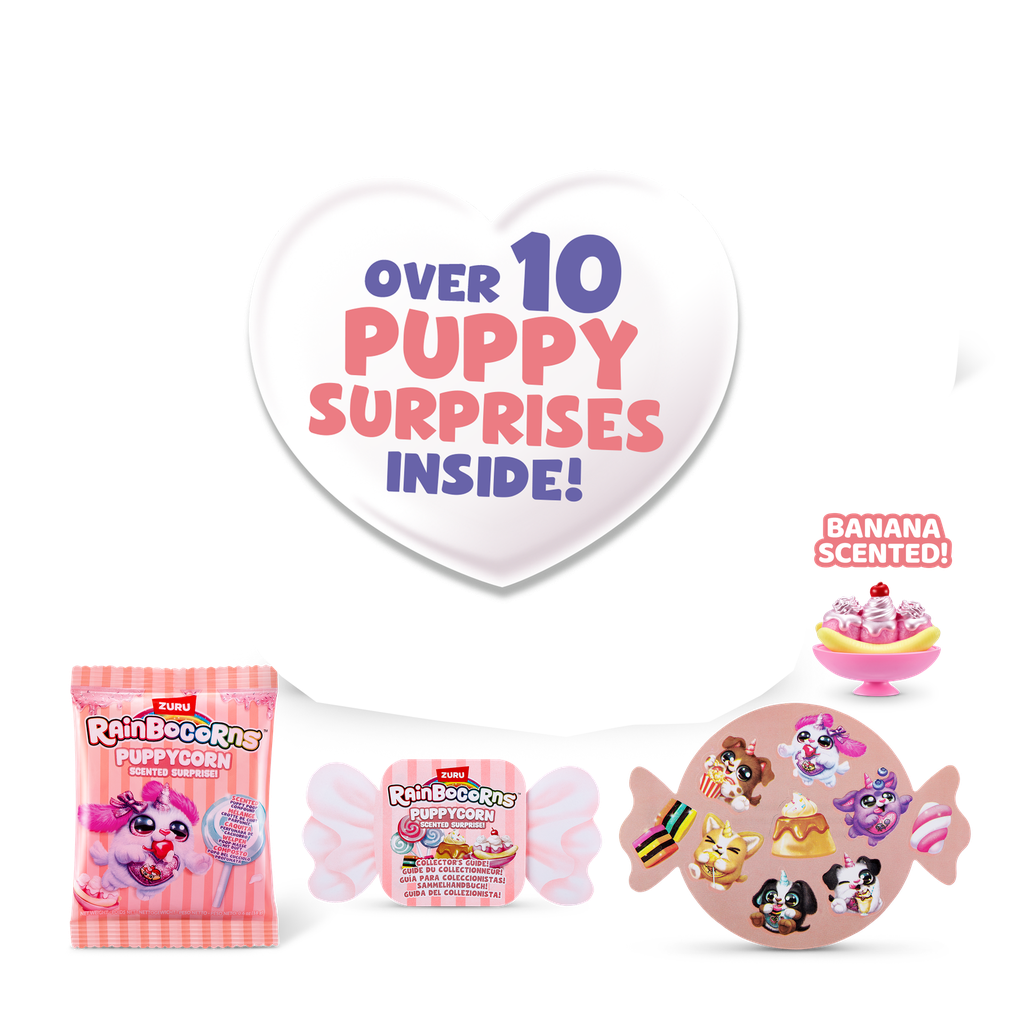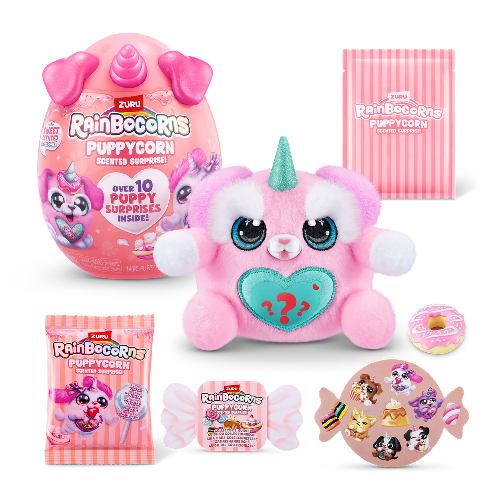 Discover new candy coated cuties with Puppycorn Scent Surprise! Crack open the egg to discover an adorable Puppycorn, along with a scented accessory that will tickle your senses. But the surprises don’t end there! Dive into the world of playful fun with puppy poop slime and scented stickers that will leave you smiling from ear to ear. There are 7 brand new puppies to collect, each with their own individual scented accessories! Which puppy pal will you unbox?
