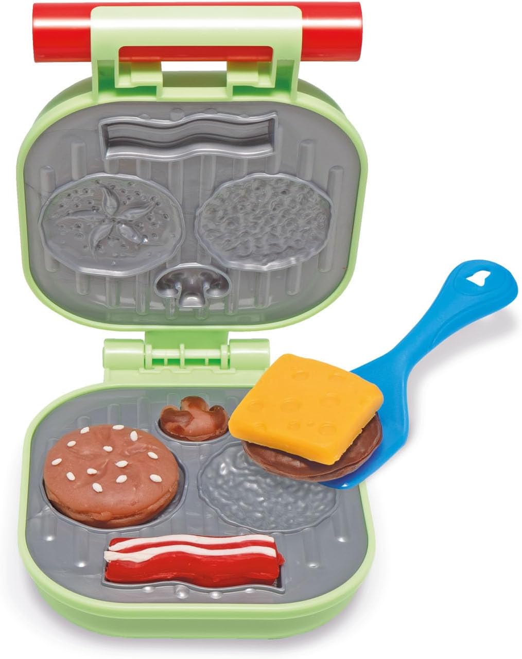 With the Art & Fun Kneading Set Burger, little kneading masters can conjure up great burgers from kneading and prepare the ingredients in the burger grill. The bread, the patty, the bacon and the mushrooms can be prepared in it. Additional ingredients can be crafted on top of the grill. Everything can then be arranged on the plate and playfully eaten with a fork and knife.The Art & Fun Dough Set Burger by Simba Toys contains 4x 50g dough, the burger grill and a 13-piece accessory.